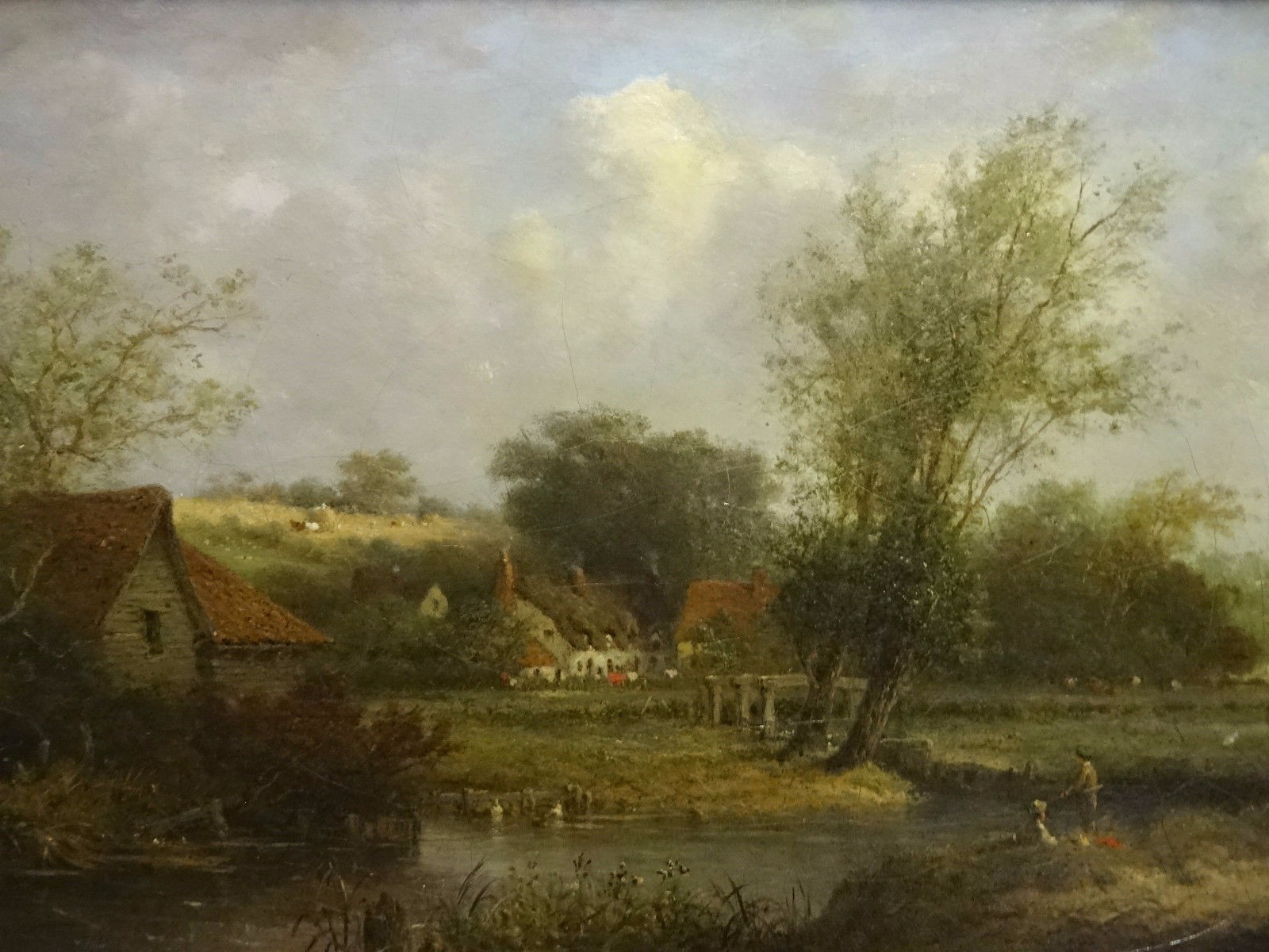 Gorgeous 19th Century Country Landscape Oil Painting with Figures Fishing (1 of a Pair)
