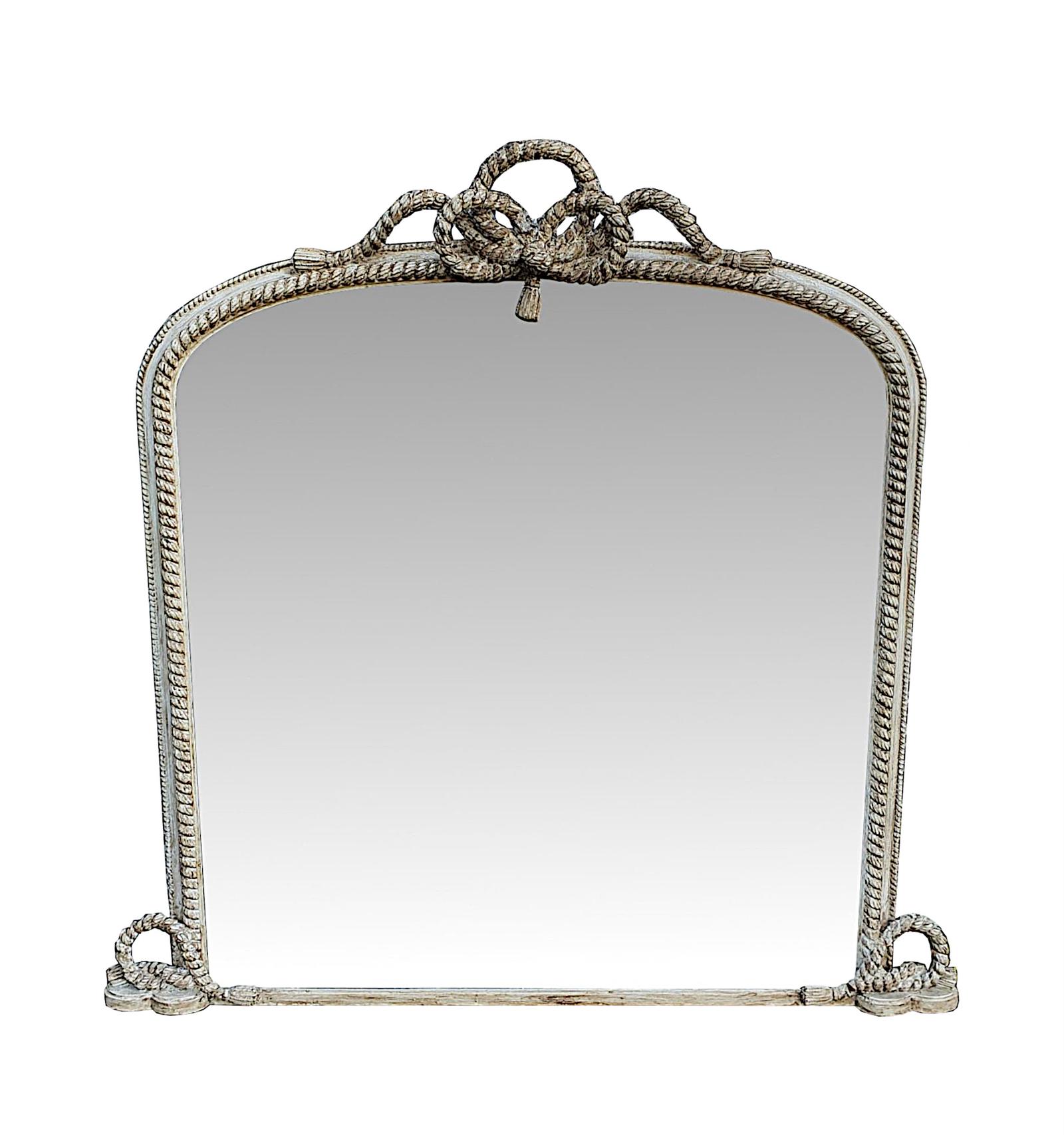 Gorgeous 19th Century Overmantle Mirror Restored in a Distressed Paint Finish