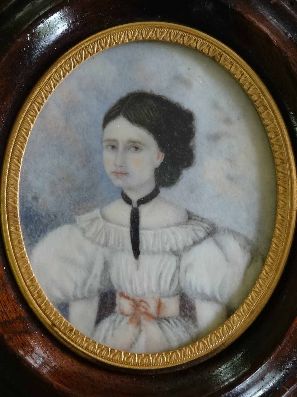Gorgeous 19Thc Miniature Oval Oil Portrait Painting of a Pretty Girl