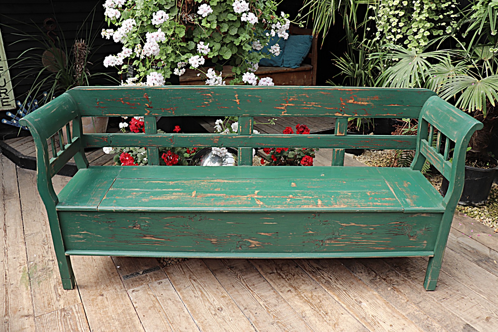 Gorgeous! 2M Old Pine / Painted Green Storage Box Bench / Settle - We Deliver!