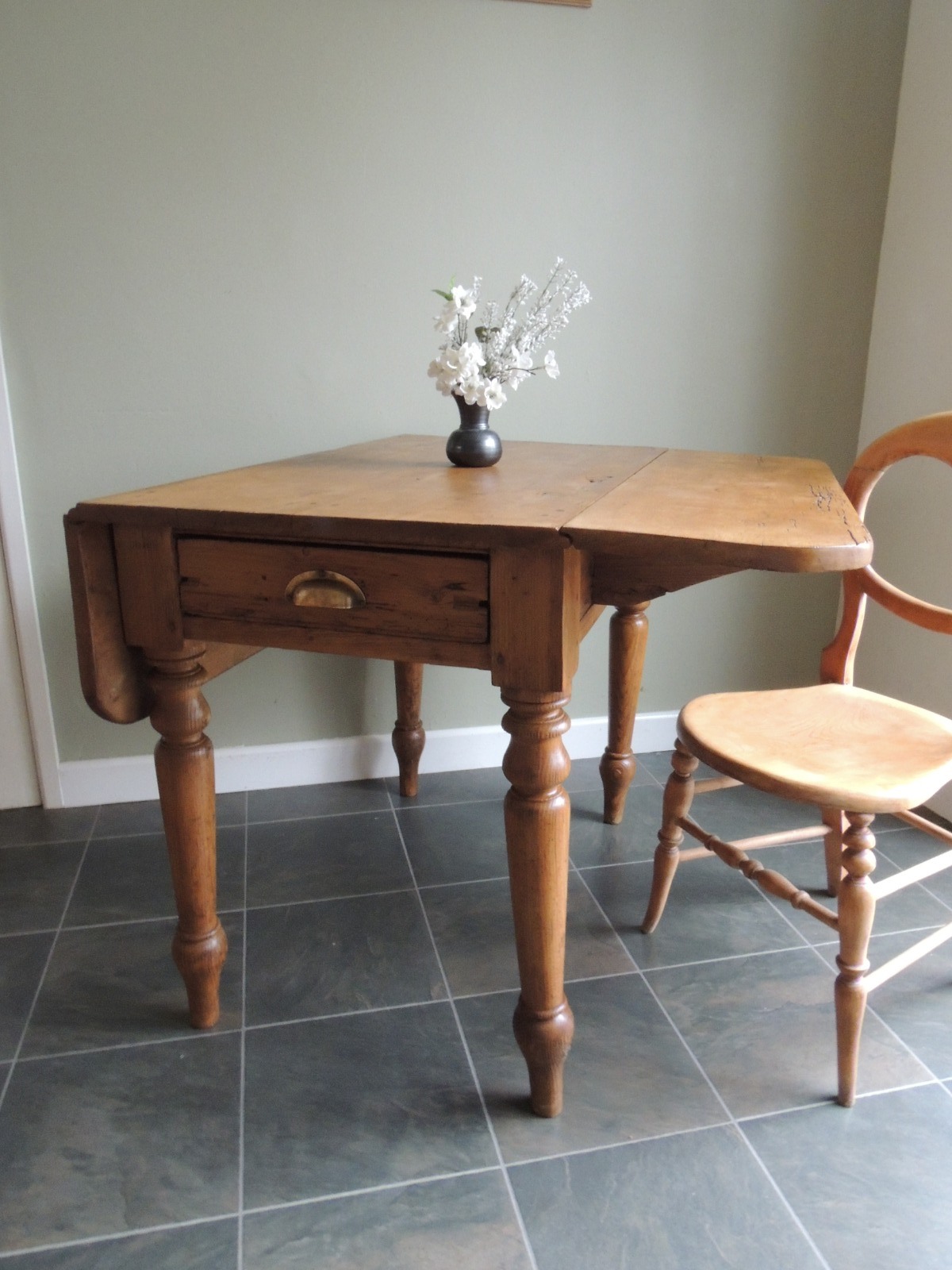 Gorgeous Antique Pine Victorian Drop Leaf Table with Drawer