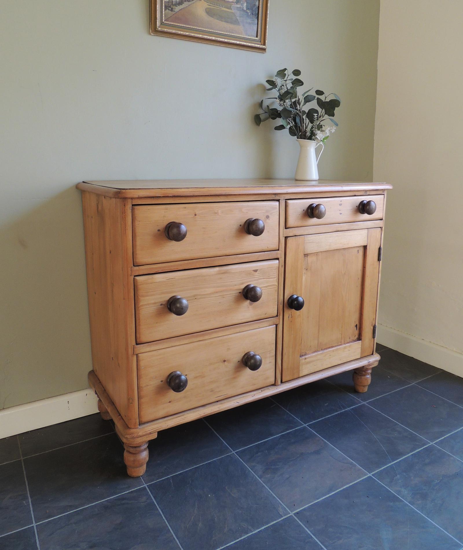 Gorgeous Antique Victorian Solid Pine Sideboard Drawers Cupboard