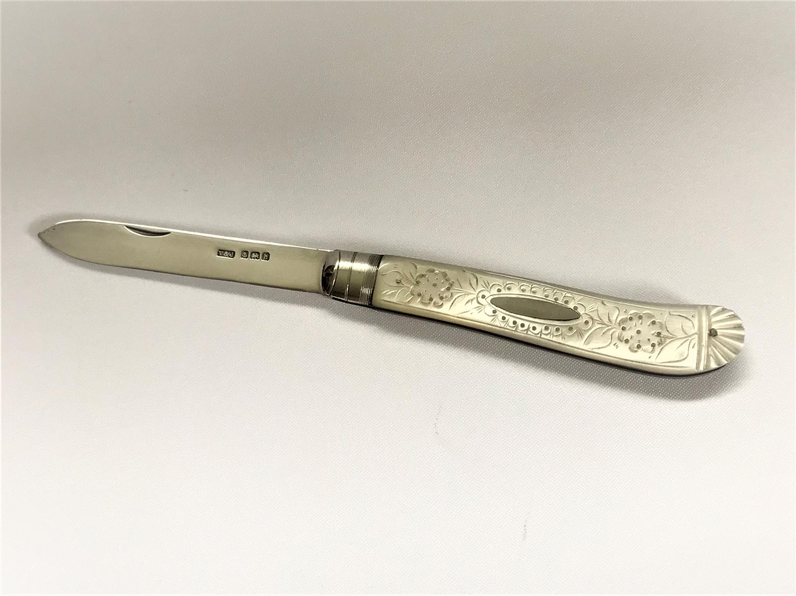 Gorgeous Edwardian Silver & Mother of Pearl Folding Fruit Knife (1 of 7)