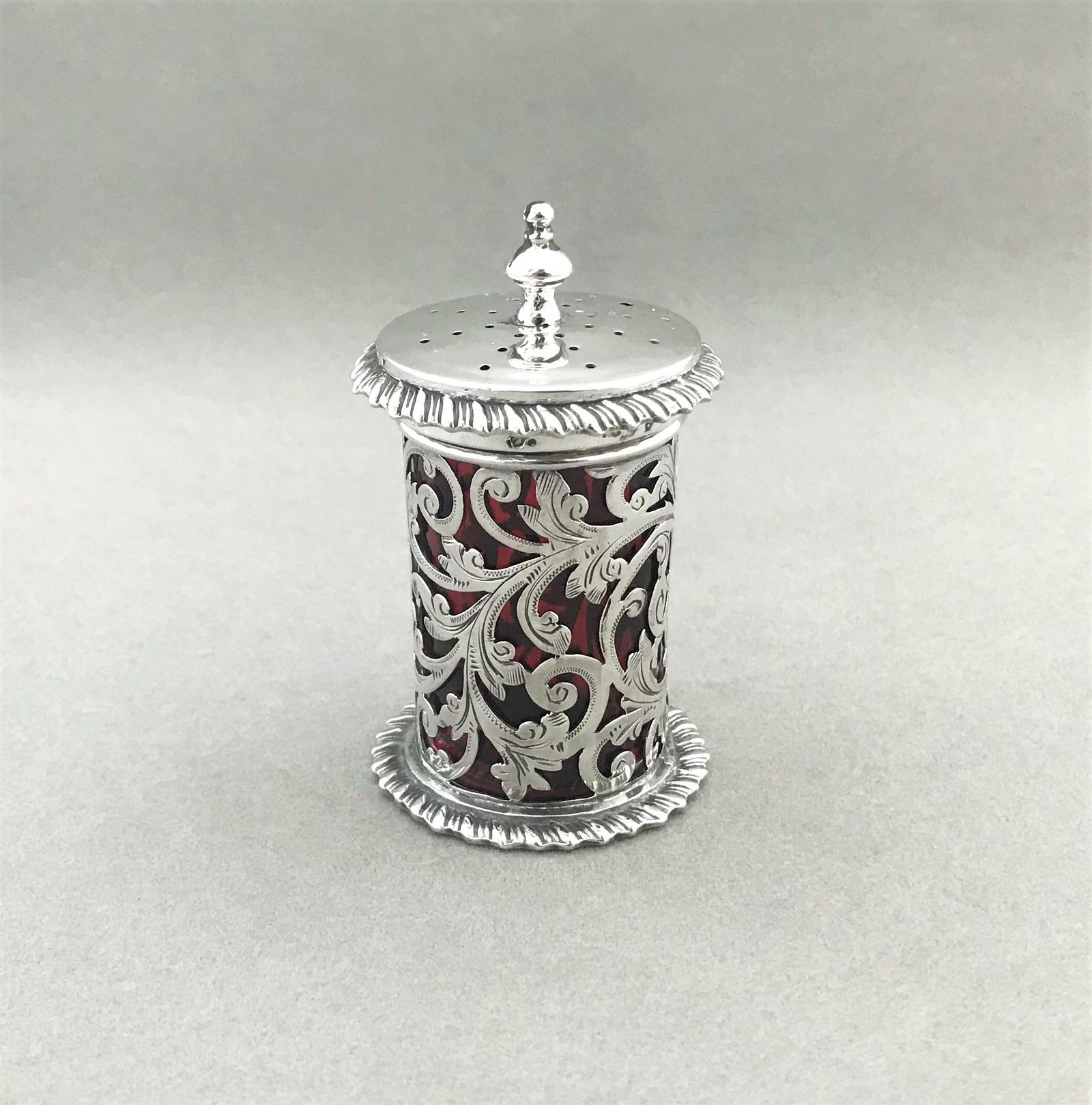 Gorgeous Late Victorian Silver & Cranberry Glass Pepper Pot