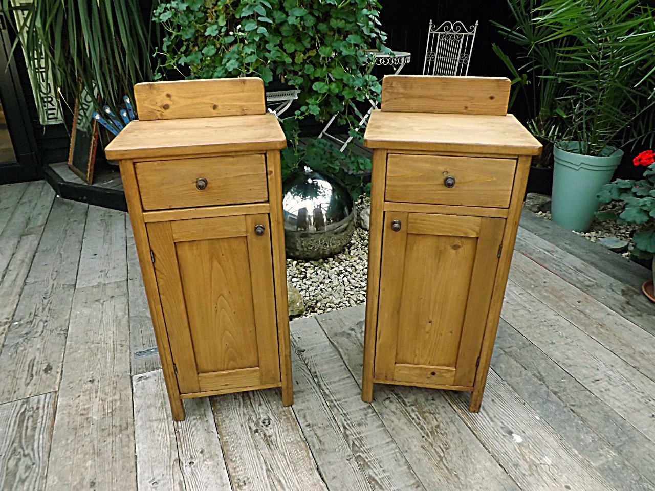 Gorgeous Matching Pair of Old Antique Pine Bedside Cabinets / Cupboards / Tables