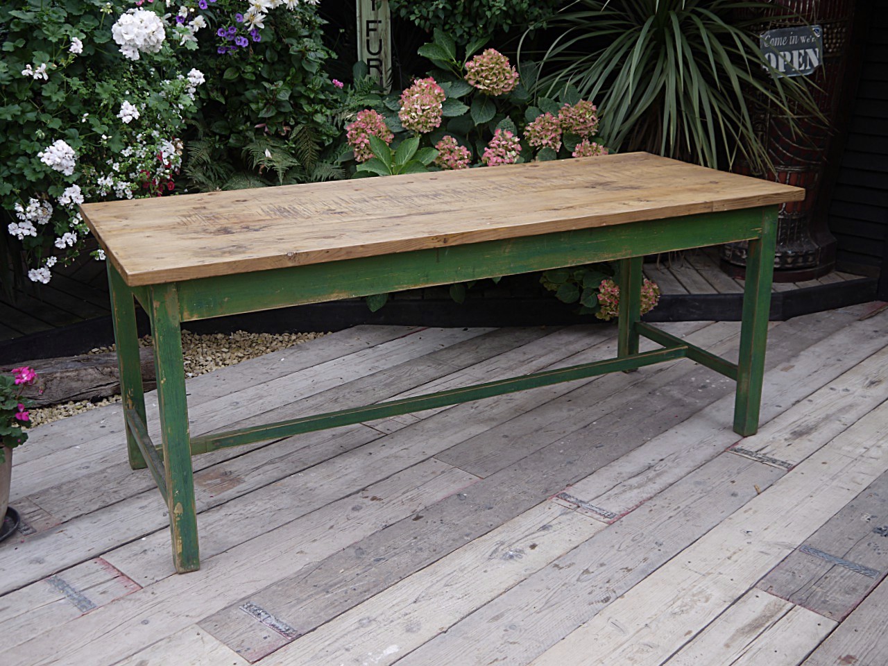Gorgeous! Old Antique / Vintage Pine & Painted Kitchen / Dining Refectory Table