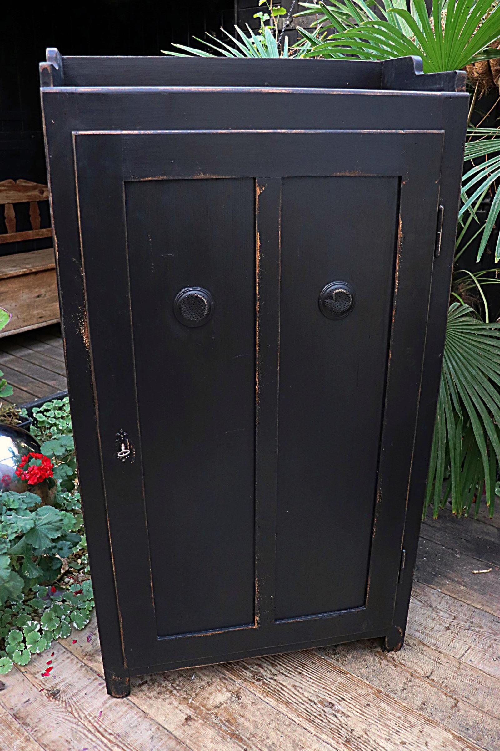 Gorgeous Old Pine Black Painted Linen Cupboard