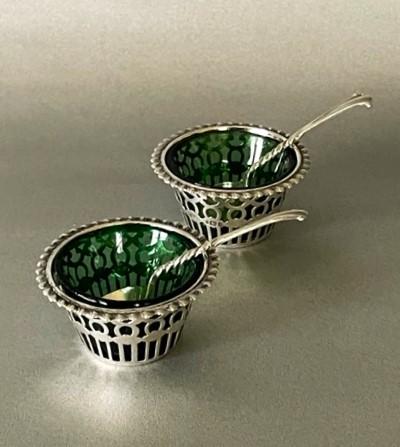 Gorgeous Pair of Edwardian Silver Salts & Spoons (1 of 6)