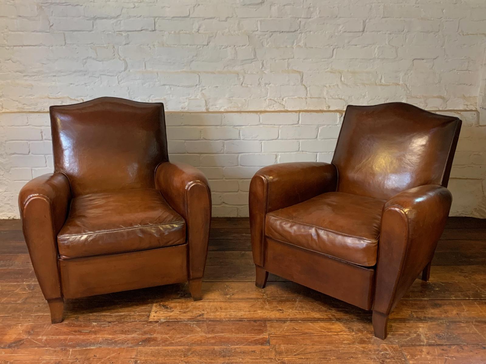 Gorgeous Pair of French Leather Club Chairs Chapeau du Gendarme Model c.1950 (1 of 11)