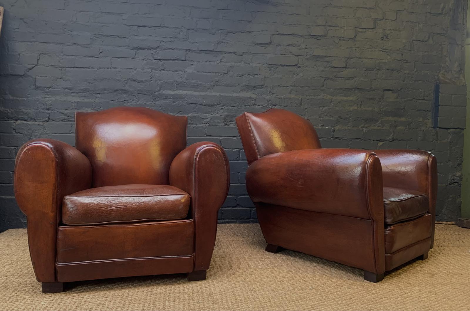 Gorgeous Pair of French Leather Club Chairs, Havana Moustache Models with Cuban Cigar Arms c.1930 (1 of 11)