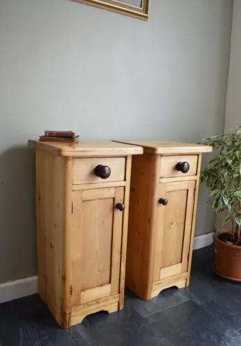 Gorgeous Pair of Matching Antique Pine Victorian Bedside Cabinets Pot Cupboards