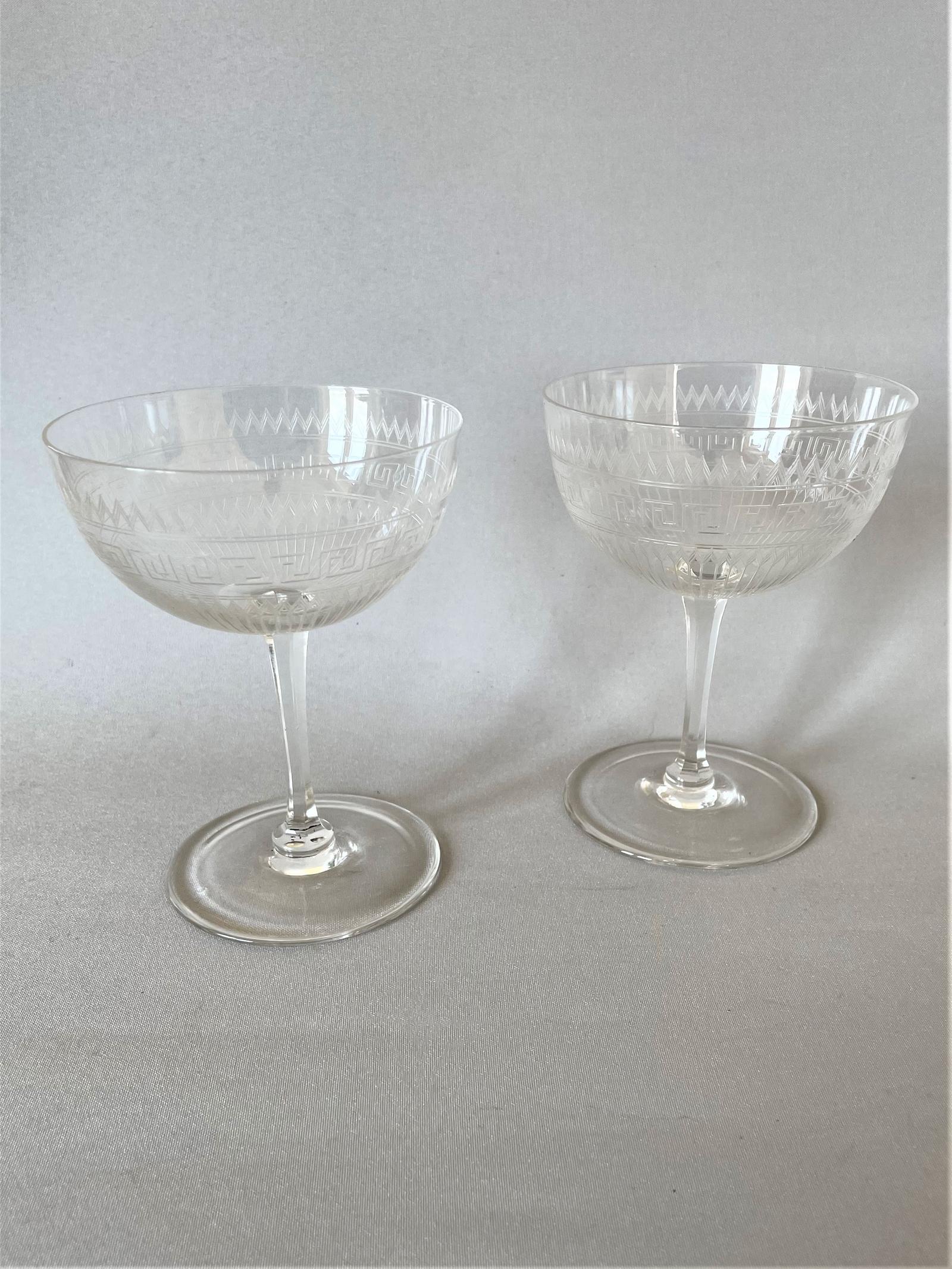Gorgeous Pair of Victorian Etched Champagne Coupes
