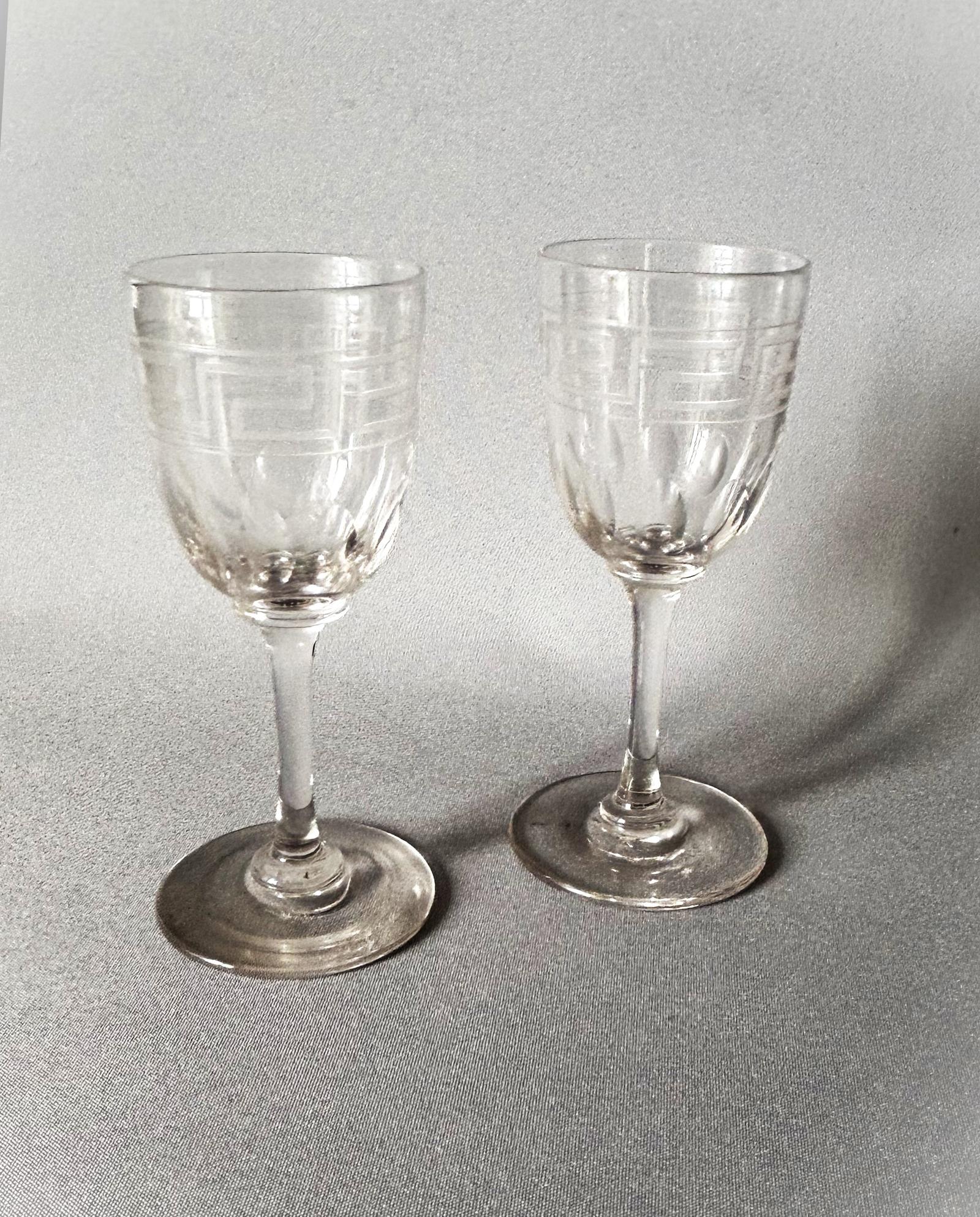 Gorgeous Pair of Victorian Greek Key Pattern Sherry/Port Glasses