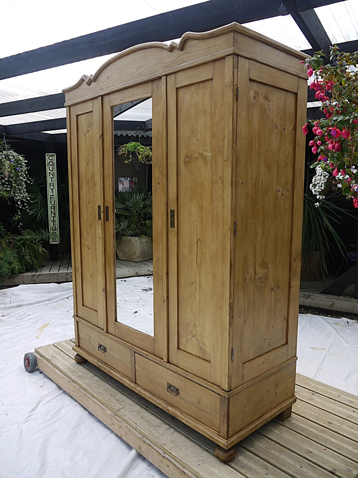 Gorgeous! Quality! Large Old Antique Pine Triple Knock Down Wardrobe & Shelves - We Deliver!