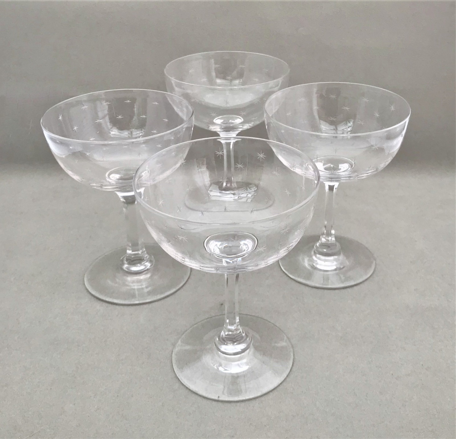 Gorgeous Set of 4 Victorian Star Etched Champagne Bowls
