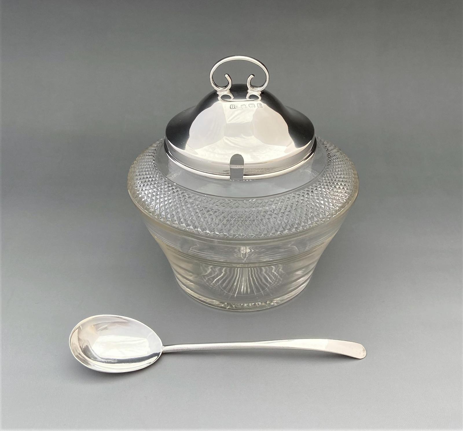 Gorgeous Silver & Cut Glass Preserve Jar & Spoon