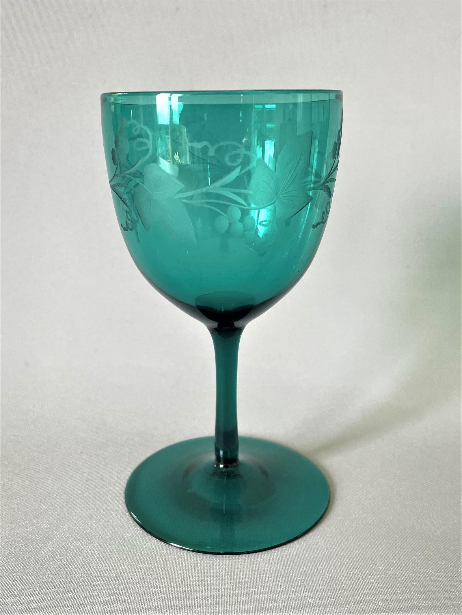 Gorgeous Victorian Aqua Green Etched Wine Glass (1 of 4)