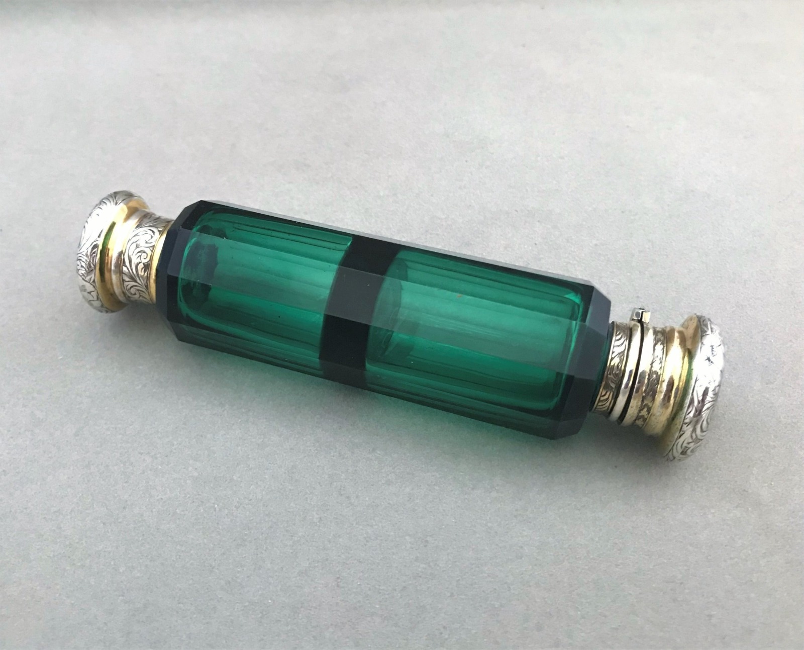 Gorgeous Victorian Double Ended Perfume Bottle with Silver Gilt Mounts