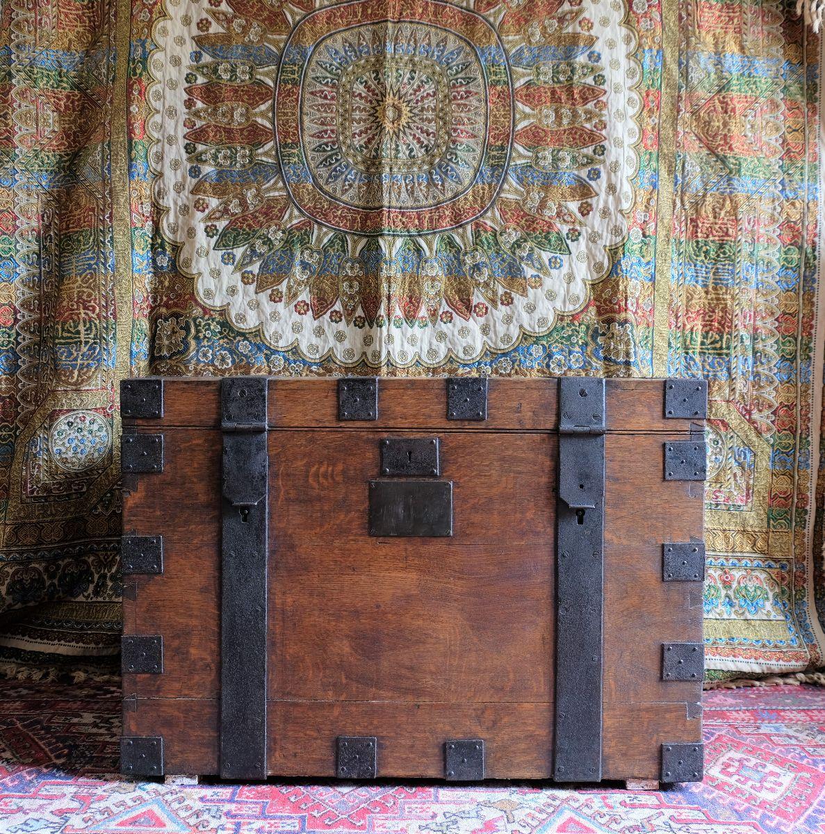 Gorgeous Victorian Metal Bound Oak Plate Chest, Domed Hinged Top, Side Carrying Handles
