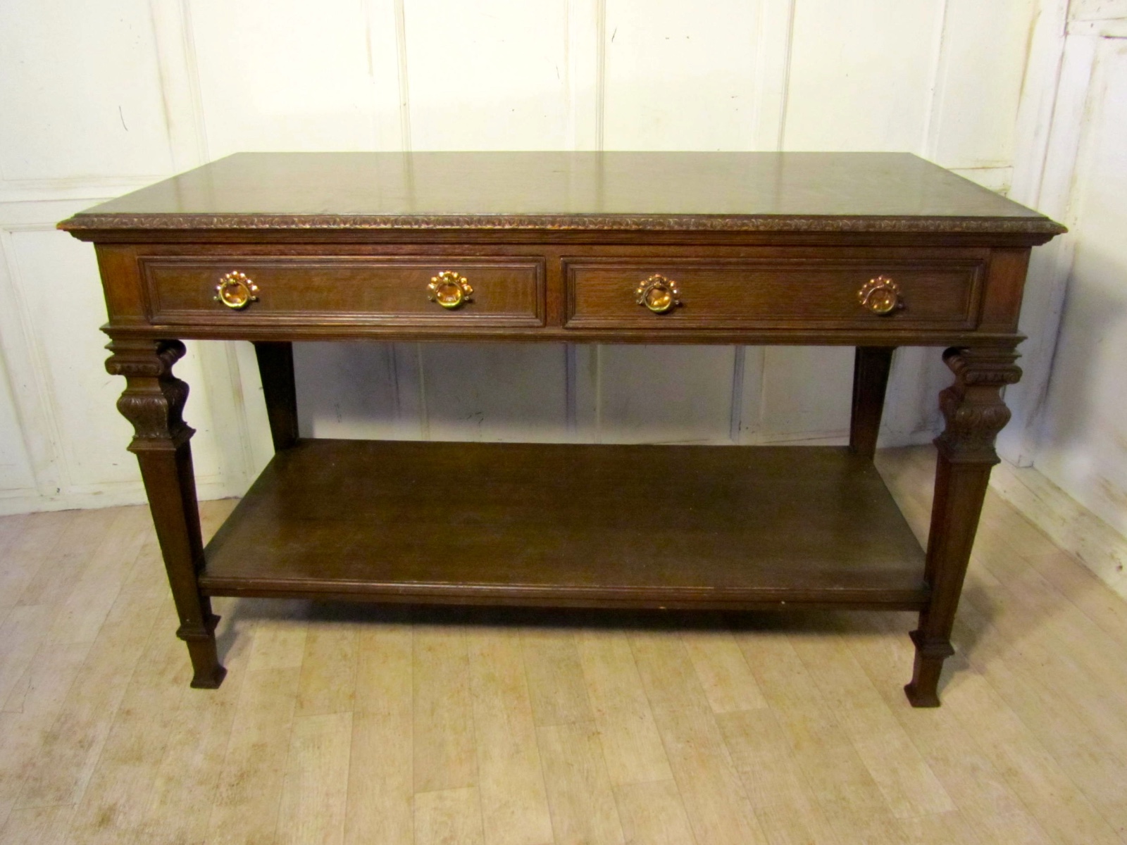 Gothic Arts & Crafts Oak Hall Table / Serving Table