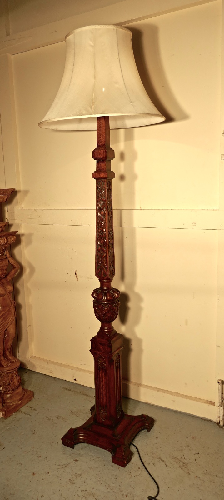 Gothic Carved Oak Arts & Crafts Floor Standing Standard Lamp