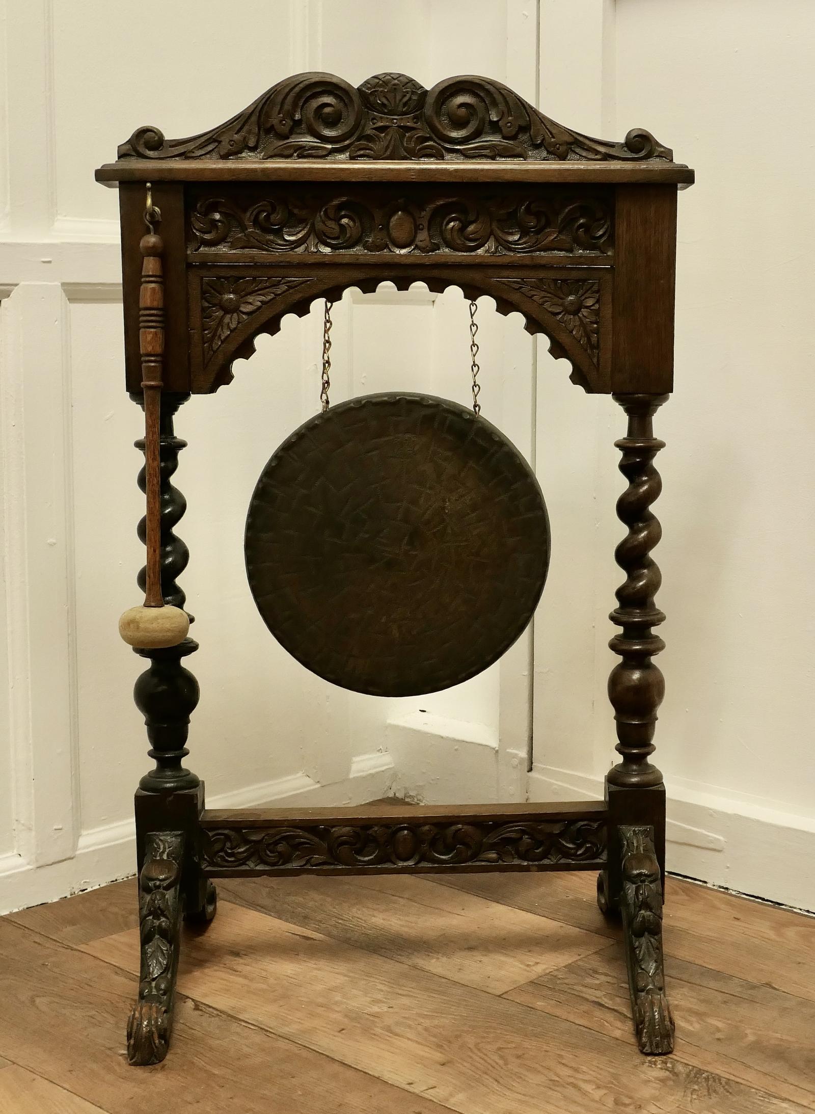 Gothic Carved Oak & Brass Hallway Dinner Gong