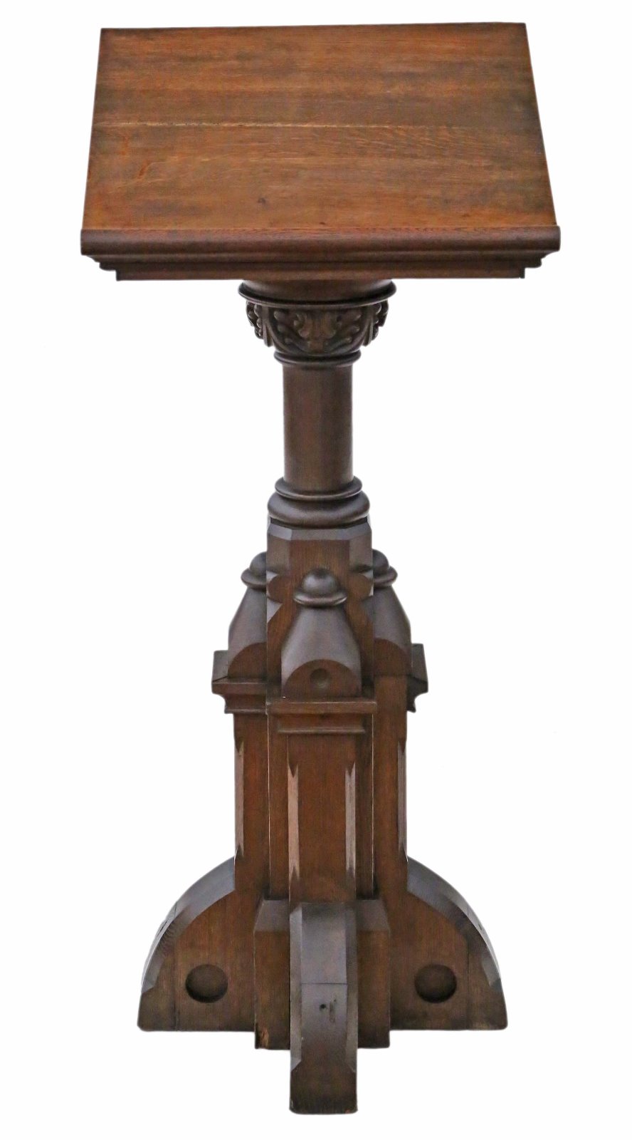Gothic Carved Oak Pedestal Lectern Stand Table Station