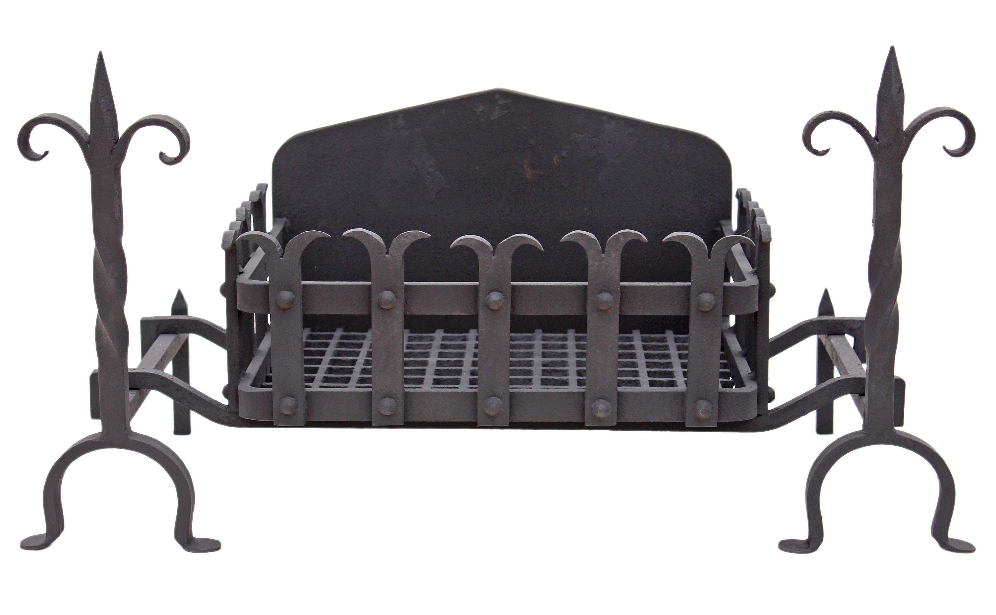 Gothic Forged Cast Iron Steel Fire Grate Basket with Dogs (1 of 1)