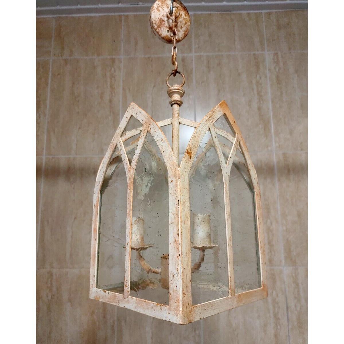 Gothic Revival Church Window Hanging Ceiling Lantern Light Pendant Glass & Metal Vintage
