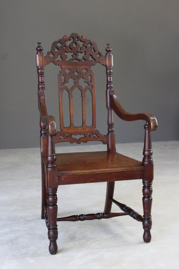 Gothic Style Mahogany Hall Chair (1 of 1)