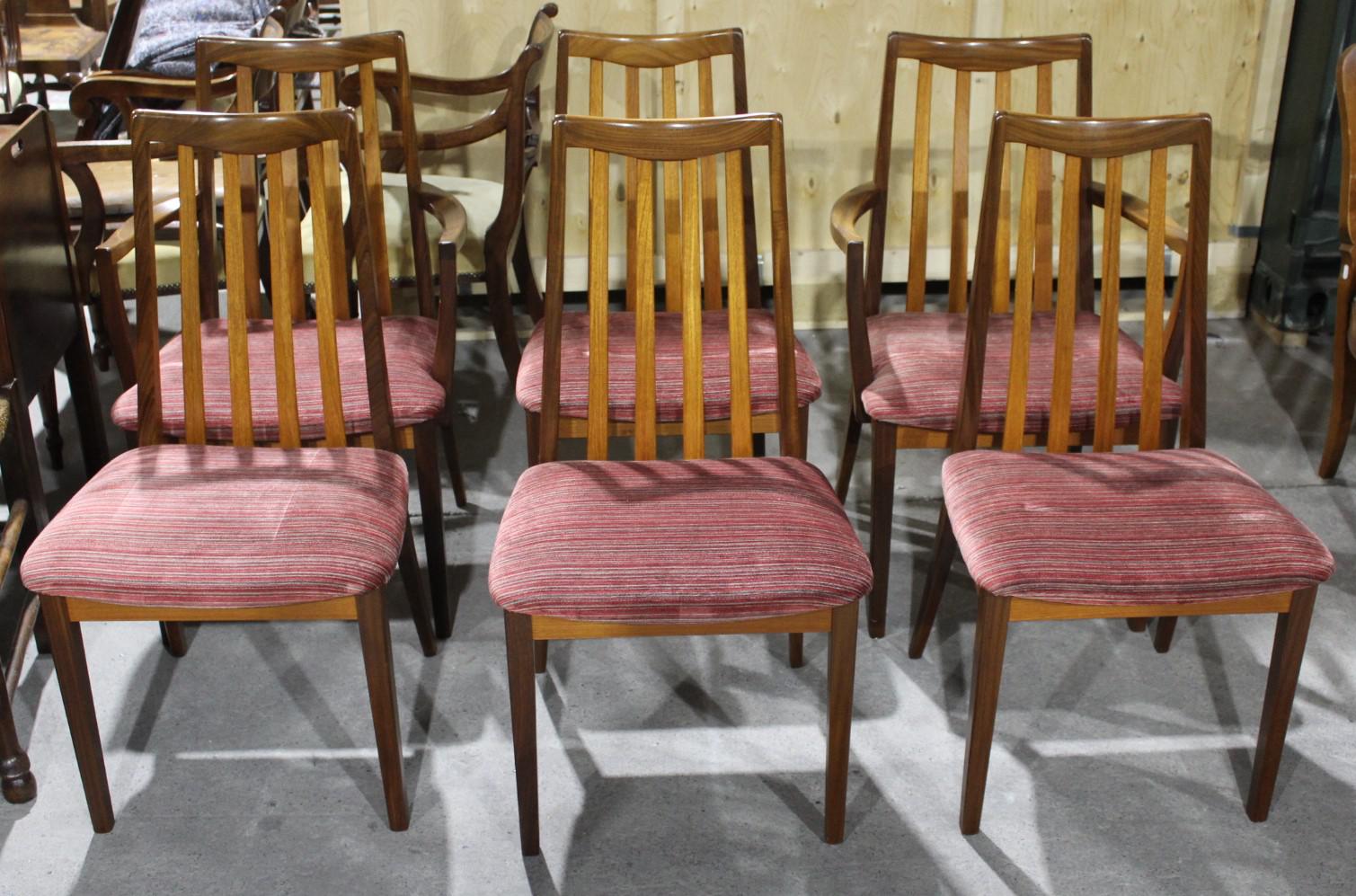 Gplan 1960s Set 6 Quality Walnut Dining Chairs Pink Stripe Seats