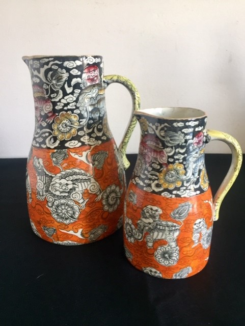 Graduated Pair of Masons Jugs in the Rare Bandana Pattern, Chinoiserie, 1840