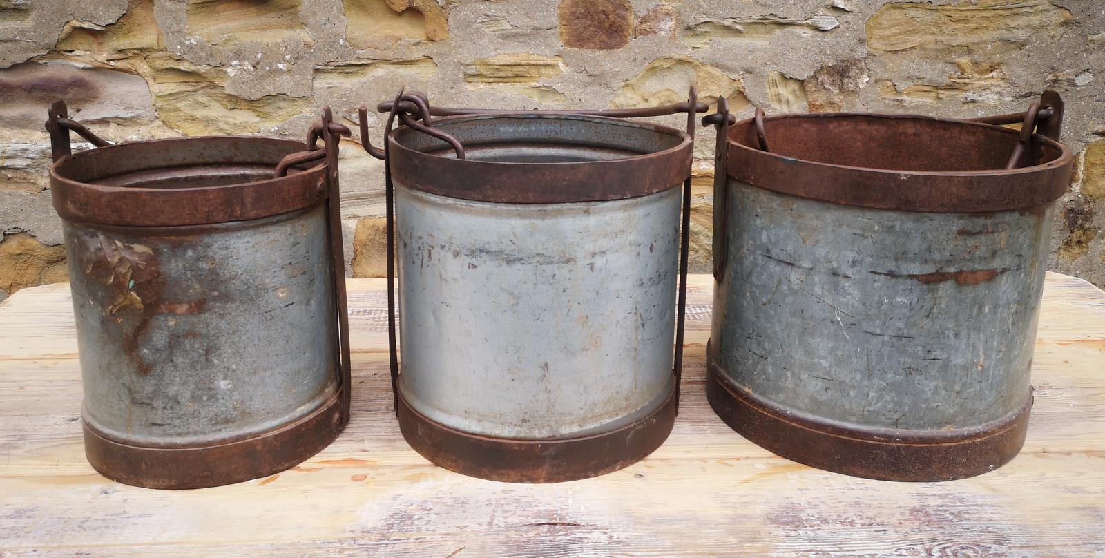 Graduated Set of Three Metal Buckets / Pots From India (1 of 10)