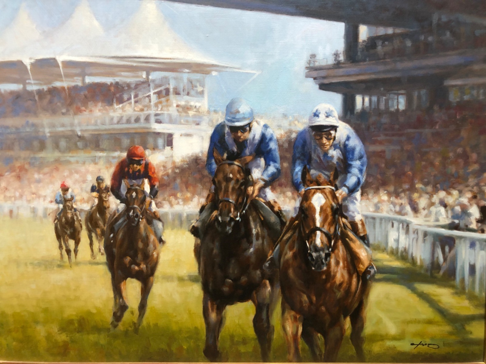 Graham Isom Original Oil Painting On Canvas of RAcehorses Titled “Goodwood July 94”