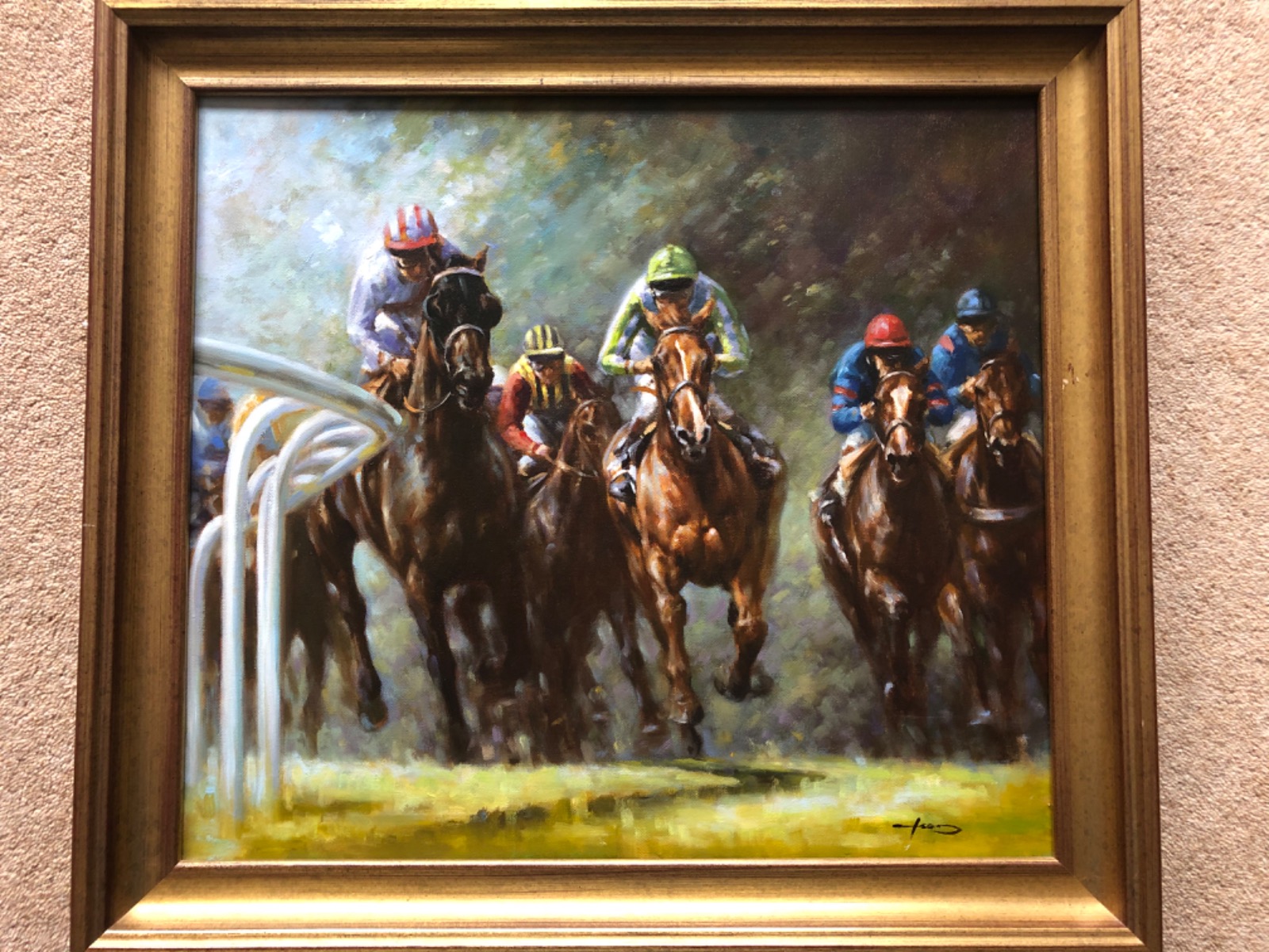 Graham Isom Original Oil Painting On Canvas Titled “the King George and Queen Elizabeth Diamond Stakes, Ascot 1995”
