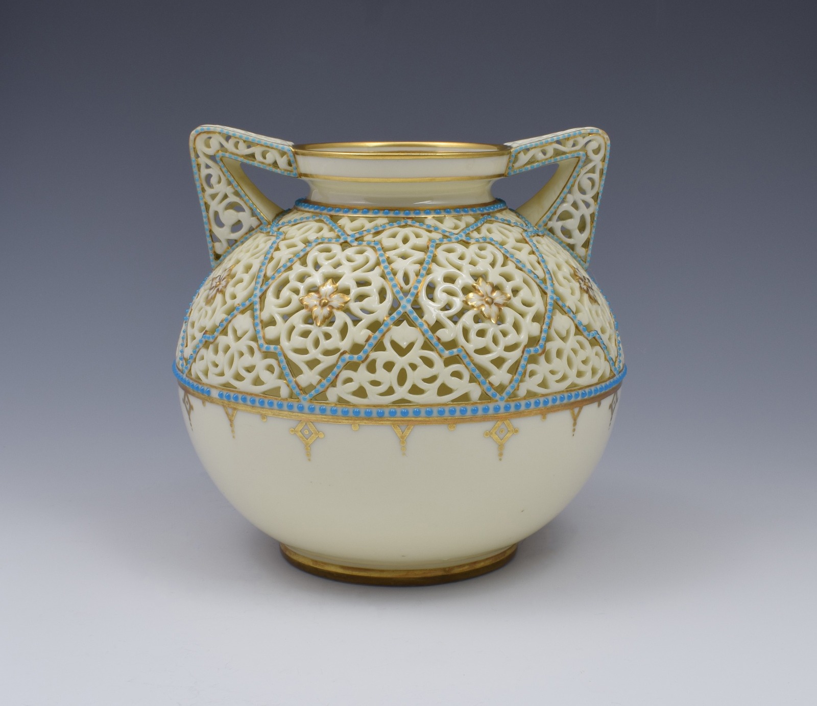 Grainger & Co. Worcester Reticulated Porcelain Vase by Alfred Barry