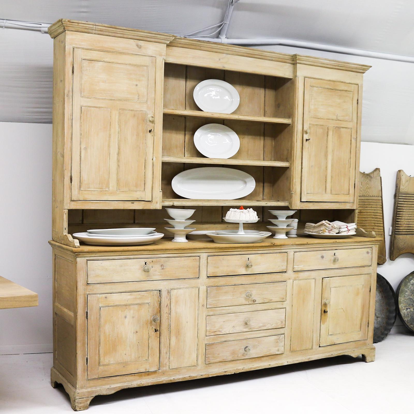 Grand Scale English 19th Century Country House Pine Kitchen Dresser