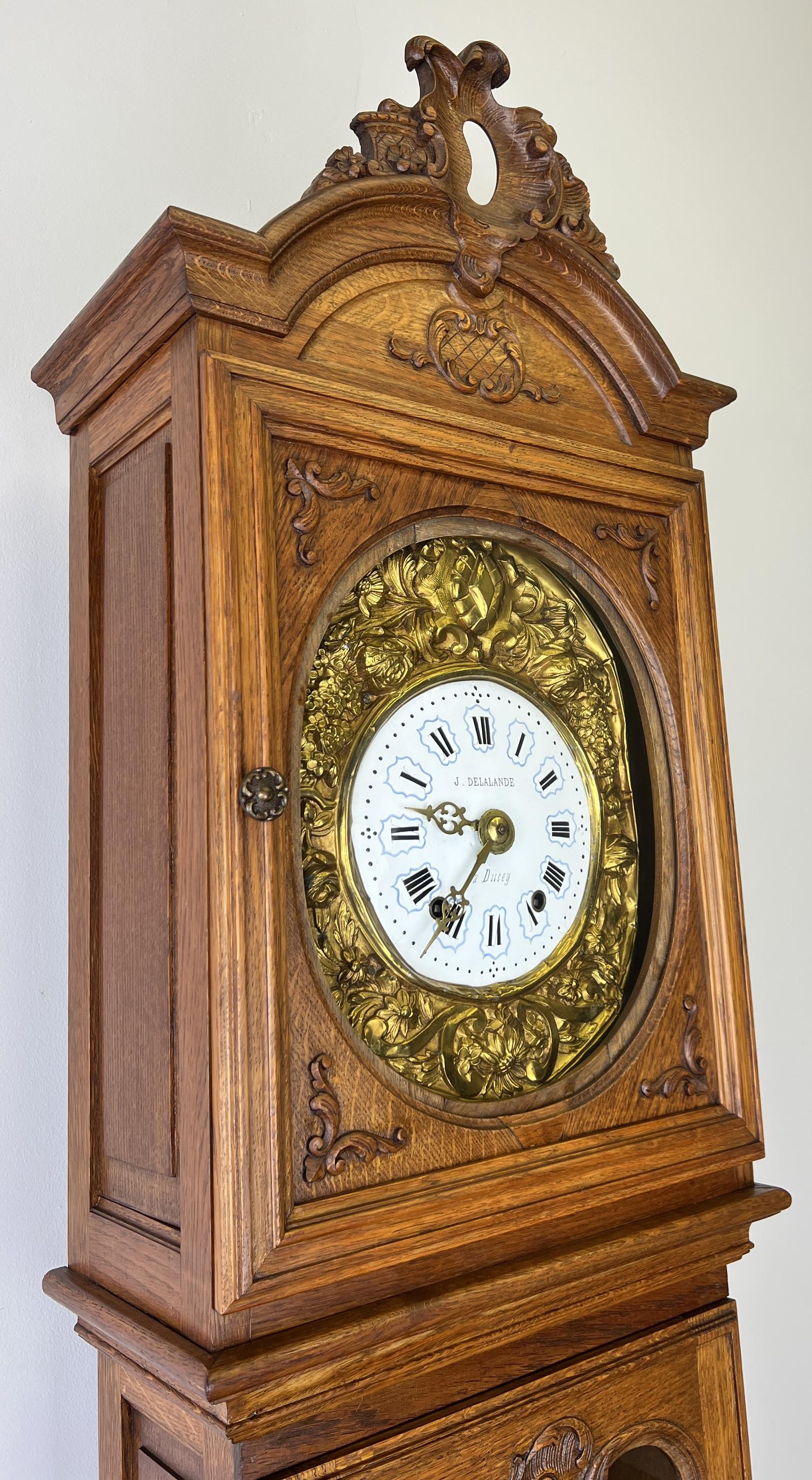 This Grandfather Clock Vintage French Style Oak Decorative Clock is located in Essex, United Kingdom