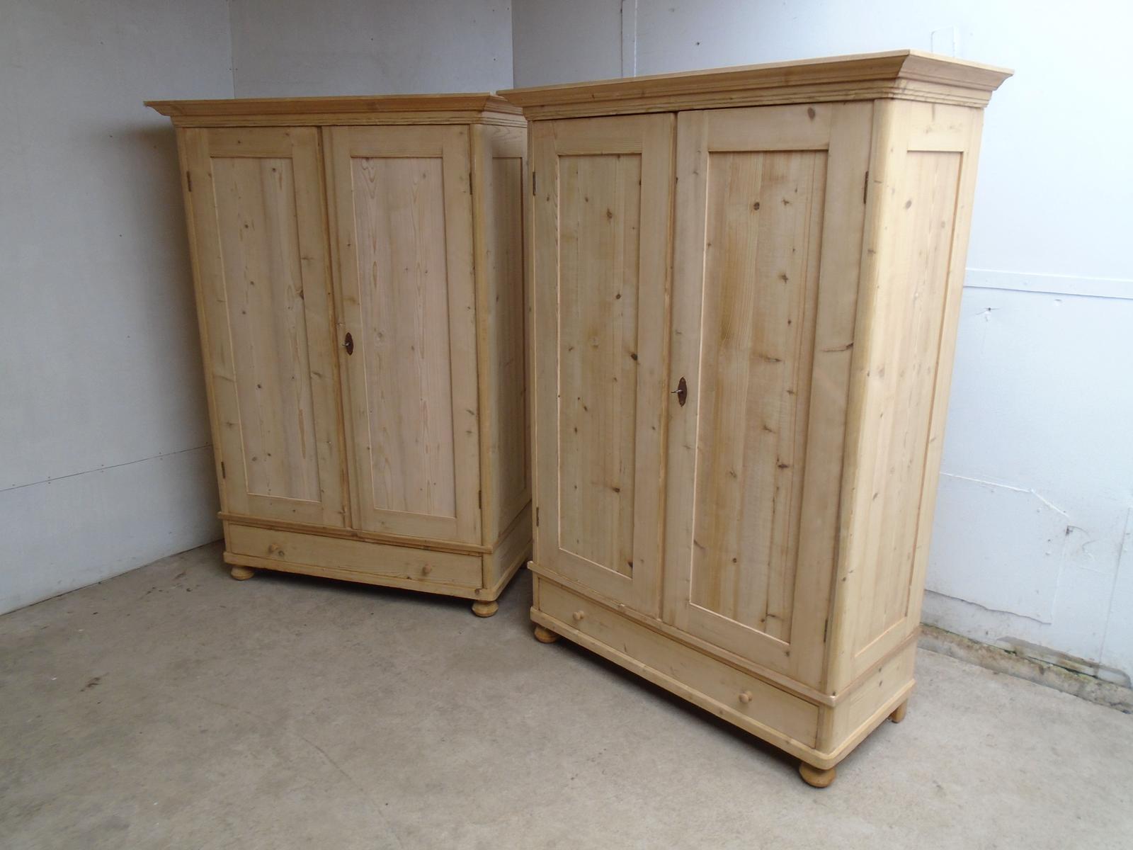 Great 1 Panel Pair of Antique Pine Knockdown Wardrobes to wax / paint