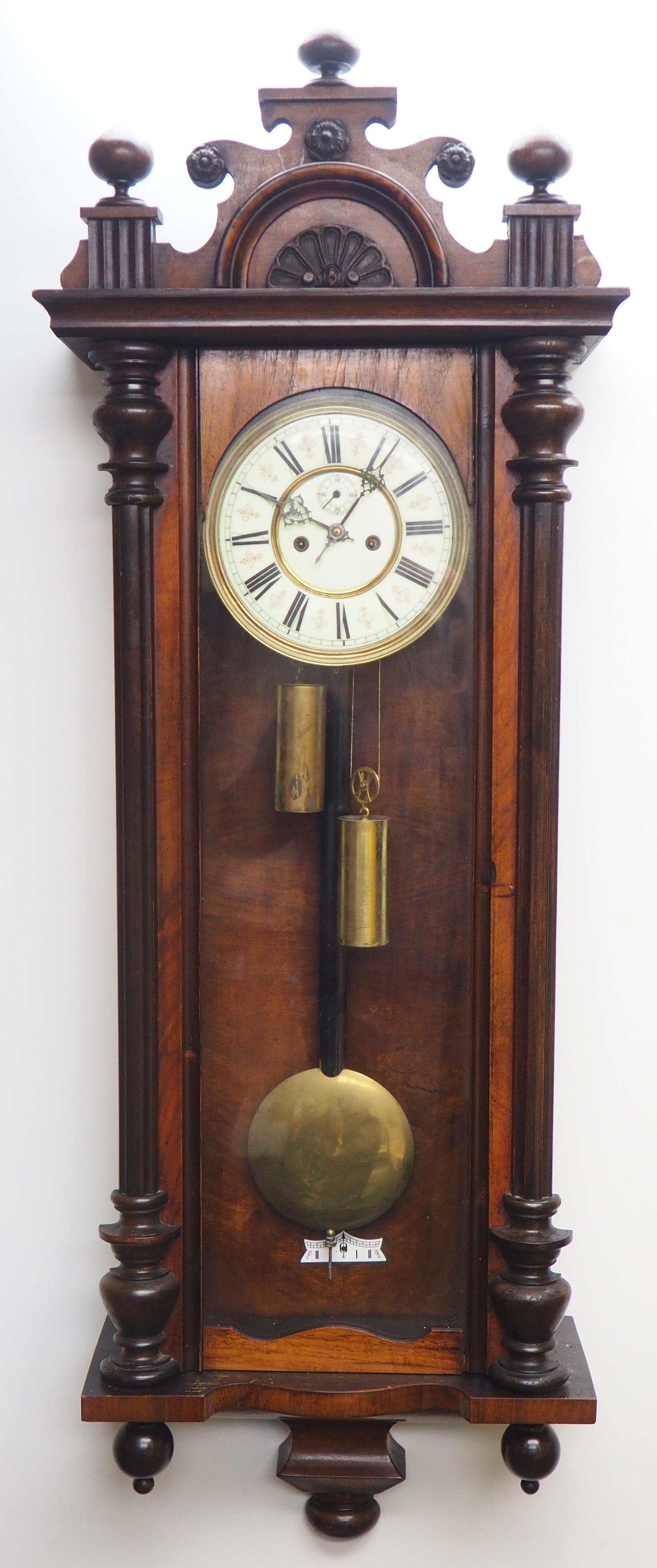 Great Antique German Twin Walnut 8-Day Mantel Clock Vienna Striking Wall Clock (1 of 11)