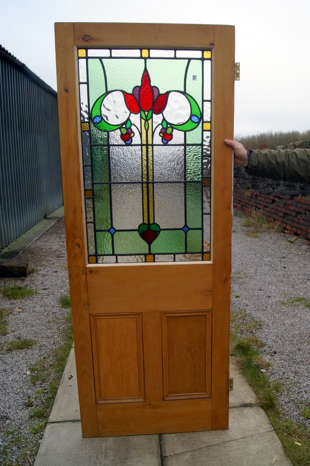 Great Leaded Glass Stripped Pine Internal Door c.1920
