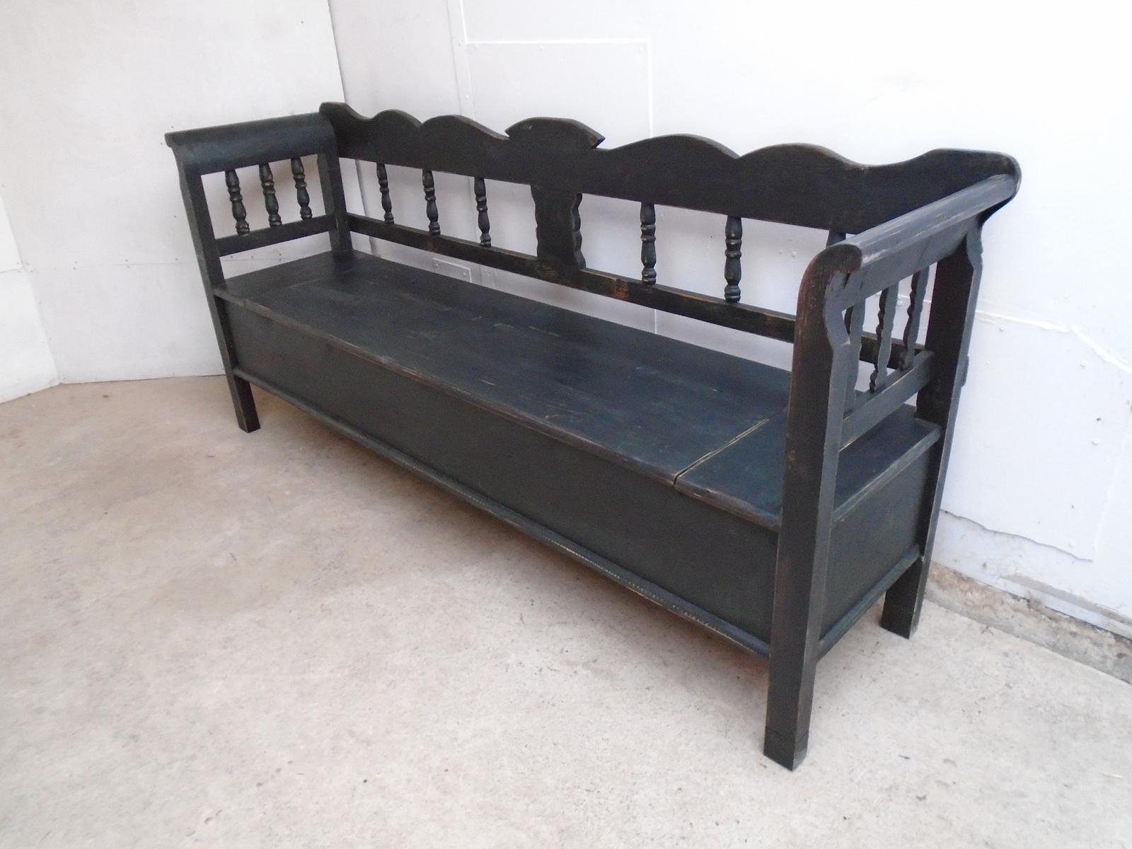 Great Painted Black / Green Antique Pine 3 Seater Box Settle / Bench