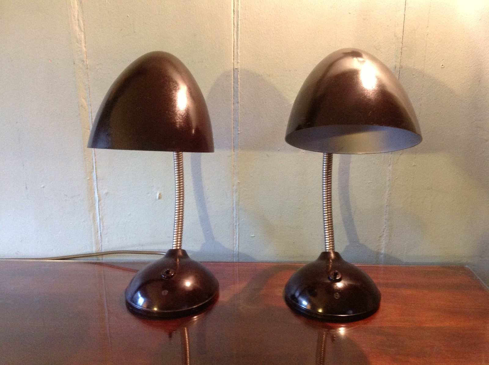 Great Pair of Bakelite Bauhaus Design Bullet Shade Table Lamps / Desk Lamps