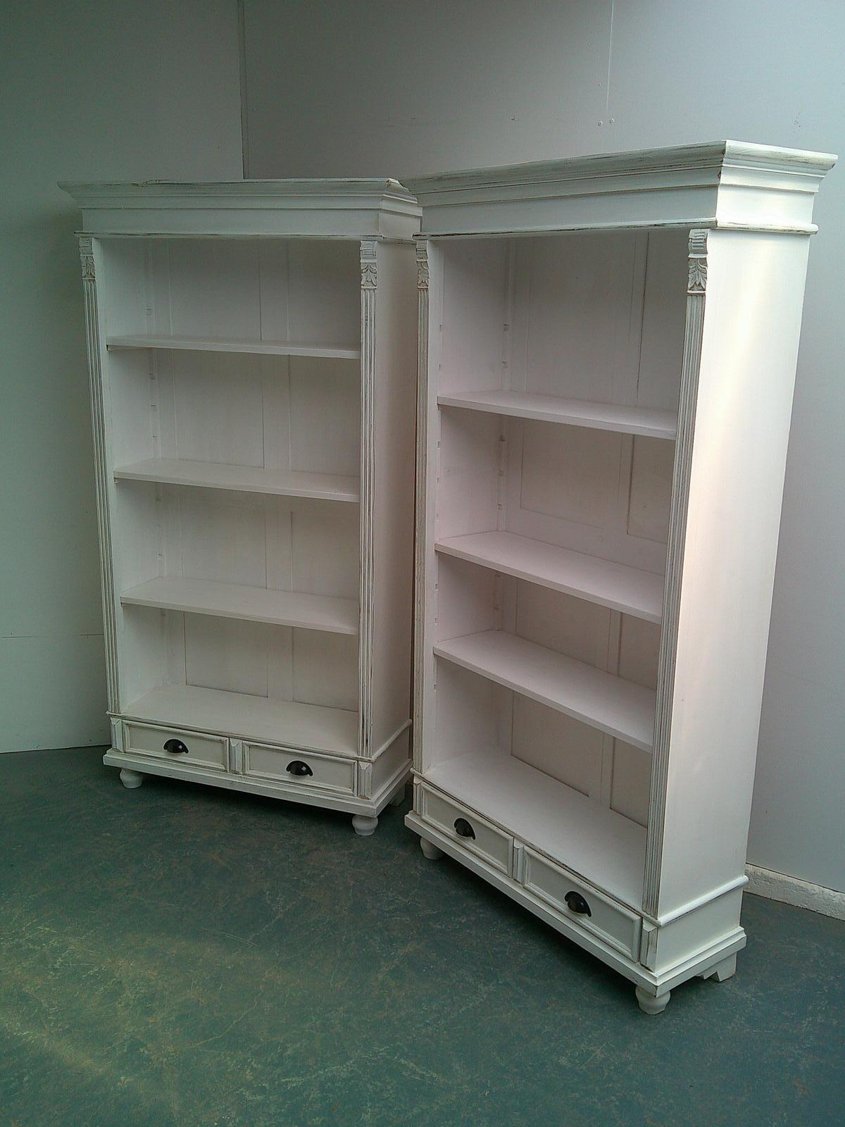 Great Pair of Painted White Antique Pine Adjustable Bookshelves to wax / paint