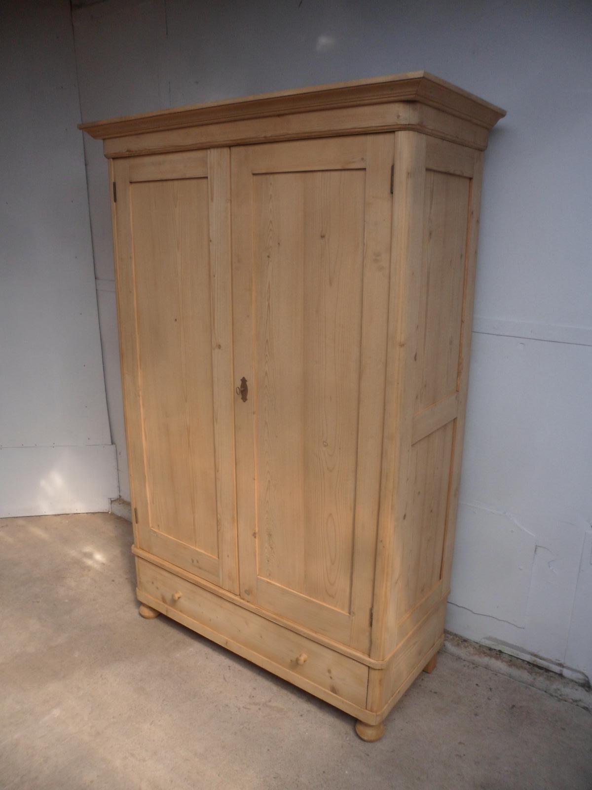 Great Panelled Antique Pine 2 Door 1 Drawer Knockdown Wardrobe to wax / paint