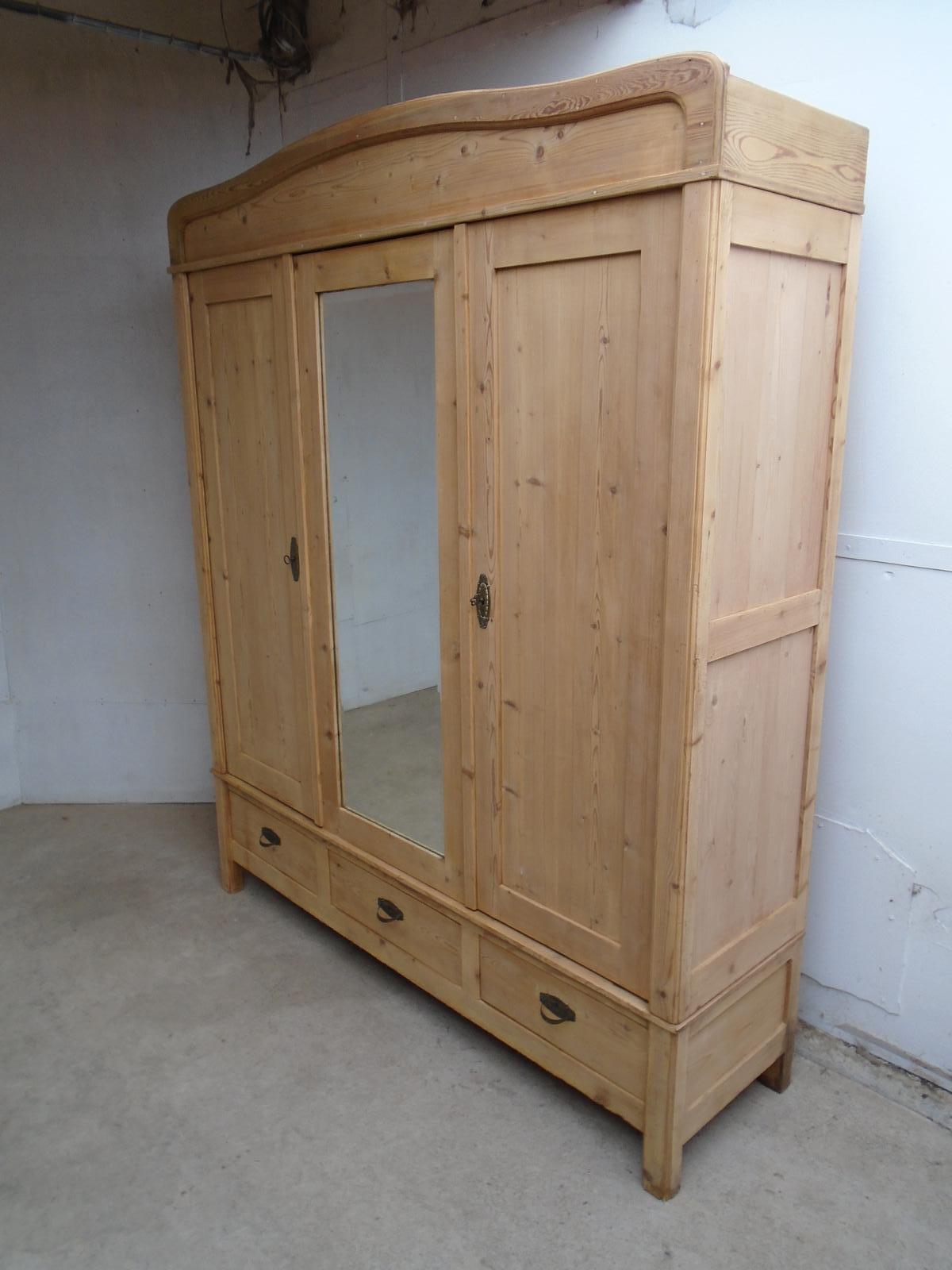 Great Triple Mirrored Large 6ft Antique Pine Knockdown Wardrobe to wax / paint