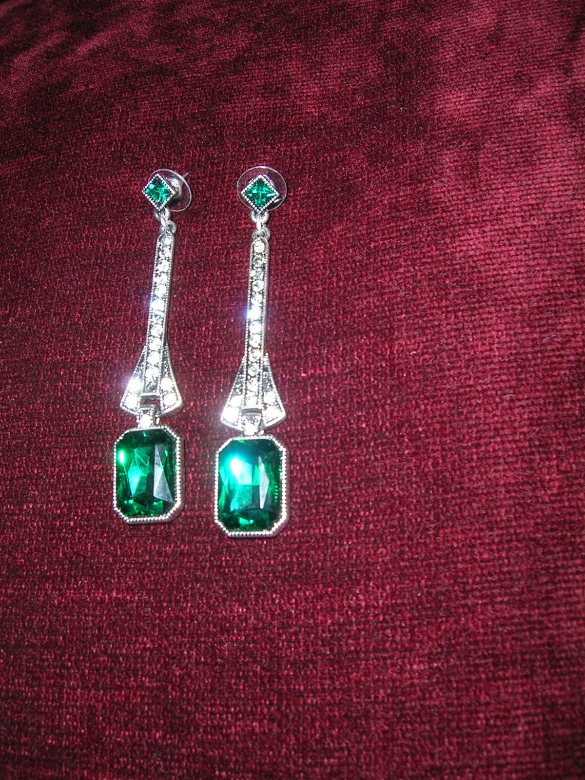 Green Art Deco Earrings Russian Vintage Theater Costume Jewellery
