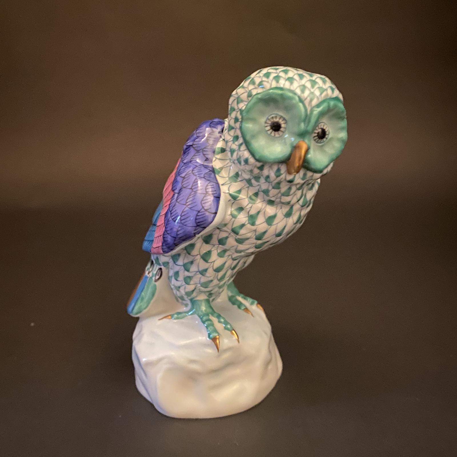 Green Fishnet Herend Owl