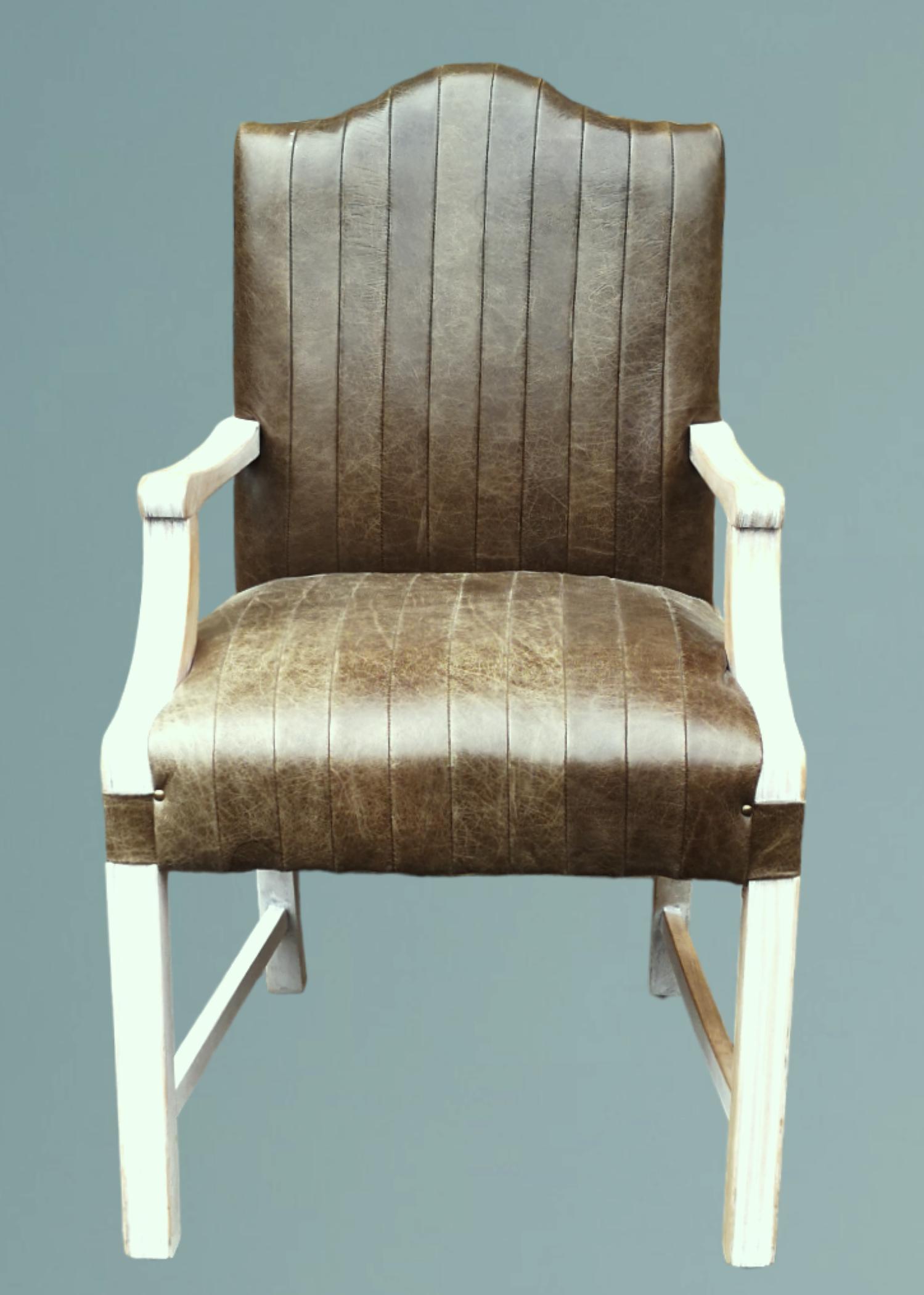 Green Leather and Limed Walnut Gainsborough Arm Chair / Desk Chair