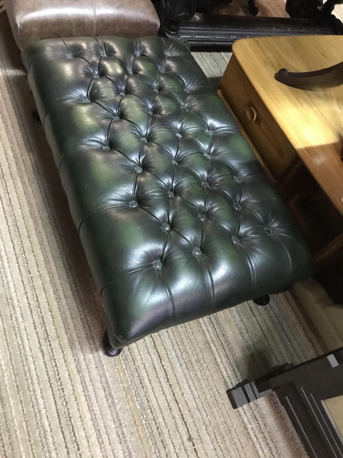Green Leather Deep Buttoned Foot Stool (1 of 8)